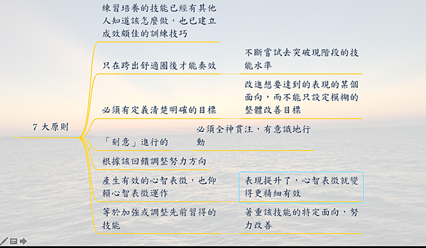 2. 持續的專注投入練習:每回的訓練時間較短、但目標較清楚